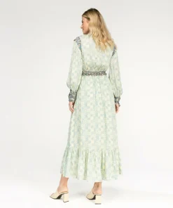 De Perfecte Jurk Voor Een Mooie Zomerdag. Op Frissere Dagen Of Avonden Combineer Je Deze Jurk Mooi Met Een Leren Jack. De Jurk Bevat Een Katoenen Voering En Een Modal Buitenkant Wat De Jurk Luchtig En Comfortabel Maakt. De Lichtgroene Print Geeft Een Frisse Uitstraling. De Jurk Is Met Elastiek Getailleerd En Heeft Een Mooie V-Hals. Met Een Blauwe Stof In De Print Reversed Flora Zijn Details Aangebracht In De Taille, Op De Mouwen En Aan De Halslijn. De Pofmouwen En De Volant Aan De Onderkant Geven Een Hele Vrouwelijk Touch Aan Het Geheel. Stylingtip: De Lange Jurk Heeft Een Boho Uitstraling En Kun Je Mooi Combineren Met Slippers Of Sandaaltjes Zoals De Aylin Sandalen. Of Kies Ervoor Om De Dalan Jurk Te Stylen Met Stoere Laarzen. De Dalan Jurk Is Ook Beschikbaar In De Reversed Print Flora.