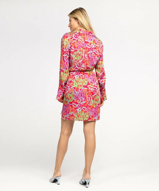 Een Opvallende Jurk In Vrolijke Kleuren. In De Taille Is De Jurk Voorzien Van Een Overslag En Koopgedeelte Wat Ervoor Zorgt Dat Deze Jurk Perfect Aansluit In De Taille. De Revers Kraag En De Knoopsluiting Aan De Voorkant Zorgen Voor Een Mooie Pasvorm En Snit. De Delton Jurk Kun Je Zowel Naar Het Werk Dragen Als Naar Een Feestje. De Lengte Is Tot Net Boven De Knie En De Jurk Heeft Lange Mouwen. In Combinatie Met Mooie Sandaaltjes Creëer Je Een Elegante Zomerlook. De Jurk Draagt Comfortabel En Is Gemaakt Van Viscose. Dit Materiaal Is Heel Luchtig In De Zomer.