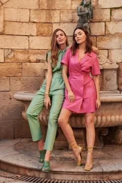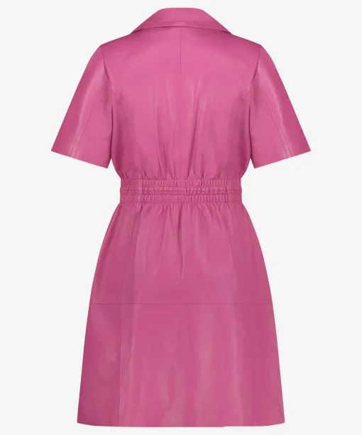 Maak Kennis Met De Diaz Jurk. De Diaz Jurk Is Een Stijlvolle Jurk In De Kleur Bright Pink Waar Je Stijlvol Mee Voor De Dag Komt. De Jurk Is Gemaakt Van Hoogwaardig En Zeer Soepel Leer En Draagt Heerlijk Comfortabel. In De Taille Is De Jurk Met Elastiek Getailleerd Voor Een Vrouwelijke Snit. De Jurk Heeft Twee Handige Steekzakken. De Jurk Is Voorzien Van Drukknopen Voor De Sluiting Van De Overslag. De Kraag Bestaat Uit Overslaande Revers Die Deze Jurk Een Chique Uitstraling Geven. Vanwege De Korte Mouwen Is Dit Een Perfecte Jurk Voor Zomerse Dagen. Styling Tip: Draag De Diaz Jurk In Combinatie Met Sandaaltjes Of Met Muiltjes Zoals De Adel In Dezelfde Kleur Buttery Yellow.