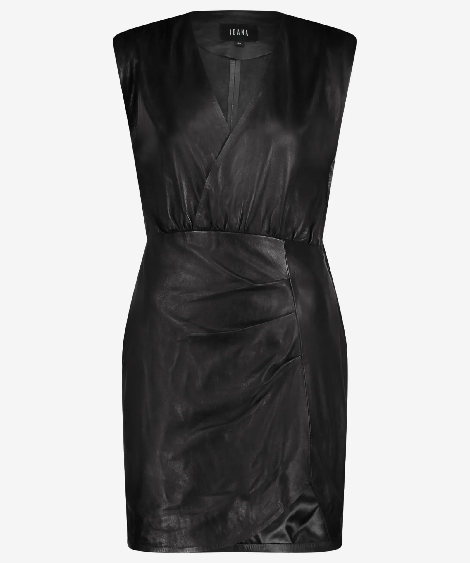 Mocht Je Op Zoek Zijn Naar Een Eyecatcher Voor In Je Garderobe Dan Is De Dove Zeker Een Goede Optie. Deze Leren Jurk Zit Aangesloten En Valt Net Boven De Knie. Door De Mooie V-Hals En De Elegante Plooien Bij De Middel Worden Je Vrouwelijke Vormen Extra Geaccentueert. De Jurk Is Voor Diverse Gelegenheden Geschikt En Is Een Echte Musthave In Je Kledingkast. Avondje Uit? Stijl De Dove Dress Dan Met Een Paar Hakken En Je Bent Ready To Go!
