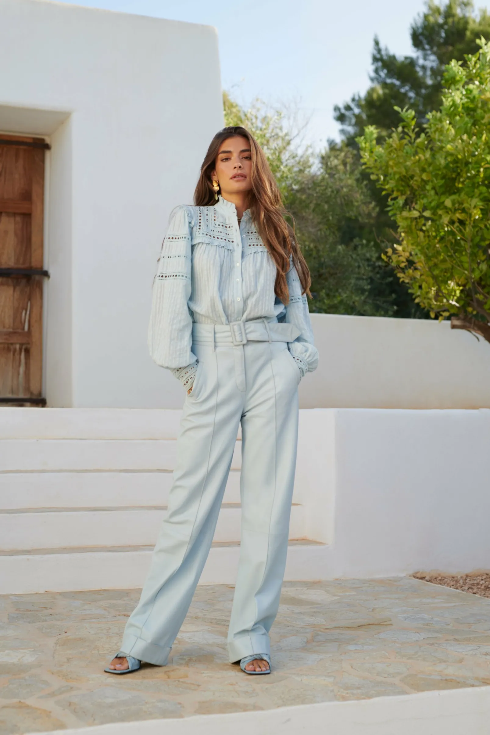 Dit Seizoen Wordt De Leren Paco Broek Geïntroduceerd In De Prachtige Kleur Soft Blue. De Broek In Non Stretch En Heeft Een Wide Leg Fit En Een Hoge Taille Met Bijassende Brede Riem. Een Opvallend Kenmerk Van Deze Broek Is De Unieke Twist Aan De Onderkant, Waarbij De Pijpen Zijn Omgeslagen. Daarnaast Siert Een Subtiele Naad, Die Van Boven Naar Beneden Loopt Op Beide Broekspijpen. De Tijdloze Esthetiek Van Deze Broek Maakt Het Niet Alleen Een Modieuze Keuze Voor Het Huidige Seizoen, Maar Ook Een Duurzaam Item Dat Haar Elegantie Behoudt Voor De Komende Jaren. Stylingtip Combineer De Paco Pants Met De Terva Top In De Kleur Soft Blue Voor Een Prachtige Ton Sur Ton Look.