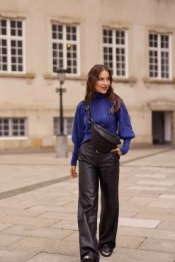Dit Is De High Waisted Wide Palma Pants In De Kleur Black. Gemaakt Van Hoogwaardig Non Stretch Leer, Is Dit Een Heel Fijn Fashionable Model. De Palma Heeft Een Stoere Uitstraling Door De Hoge Fit En Wijde Pijpen. De Broek Is Voorzien Van Twee Zijzakken, Zowel Praktisch Als Chic En Kan Aan De Voorzijde Gesloten Worden Door Een Rits En Een Leren Flap Met Drukknoop. De Palma Is Een Broek Die Overdag Casual Gedragen Kan Worden Met Sportschoenen En Waar Je ’s Avonds De Blits Mee Maakt Met Hoge Hakken. Combineer De Palma Met De Topio Top Voor Een Sophisticated Look.