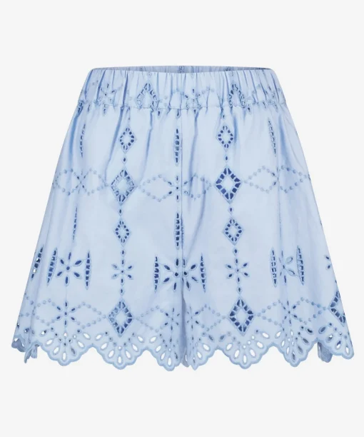 Onze Prachtige Katoenen Salia Shorts In De Kleur Airy Blue Wordt Jouw Favoriete Zomer Broekje. De Shorts Is Uniek Door De Broderie Anglaise Details En De Afwerking Aan De Onderkant. Aan De Binnenkant Is De Short Dun Gevoerd En De Elastische Band Zorgt Voor Een Passende En Comfortabele Vorm. Maak De Look Compleet Door Het De Combineren Met De Telina Blouse In Dezelfde Kleur, Airy Blue.