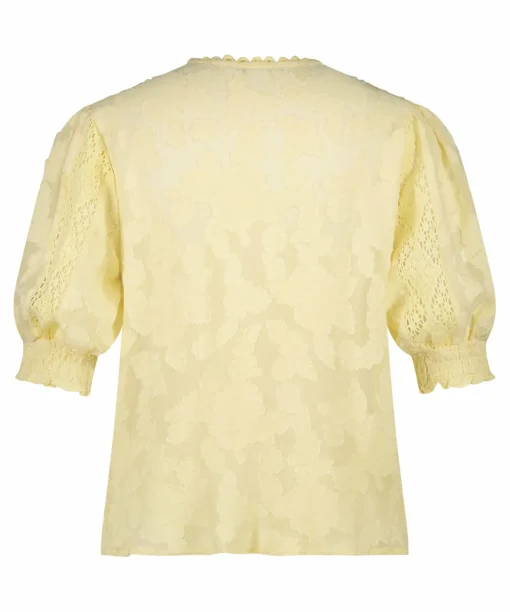 De Blouse Is Heerlijk Luchtig Door De Ruimere Pasvorm En Het Katoen. De Broderie Details En De Pofmouwen Maken De Blouse On Trend. De Stof Heeft Een Bijzondere Bloemenprint In Dezelfde Kleur Wat Het Stof Wat Reliëf Geeft Voor Een Luxe Uitstraling. De Blouse Heeft Knoopjes Tot Bovenaan En Een Iets Opstaand Kraagje Met Elegante Details. Stylingtip: De Blouse Takota In Buttery Yellow Kan Samen Gedragen Worden Met Het Selma Rokje Is Dezelfde Kleur Als Leuke Zomerse Set. De Takota Blouse Is Ook Beschikbaar In Jade Green.