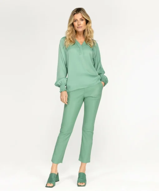 Deze Maakt Van Iedere Zomerse Outfit Een Eigentijdse Look. De Blouse Is Gemaakt Van Viscose, Wat De Blouse Heerllijk Luchtig Maakt. De Stretch Aan De Boorden Van De Mouwen Geven De Talan Blouse Net Dat Beetje Extra. De Blouse Heeft Een V-Hals En Valt Wat Langer Wat Verschillende Mogelijkheden Biedt: Draag De Blouse In Je Favoriete Jeans Of Juist Over Een Leren Legging. De Blouse Talan Is Ook Beschikbaar In De Kleuren Almond White, Crystal Blue, Bright Pink En Taupe.