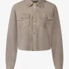 De Thora In De Prachtige Stone Kleur Is Een Suède Blouse Met Drukknopen En Lange Mouwen. Het Is Een Losvallend Kort Model.