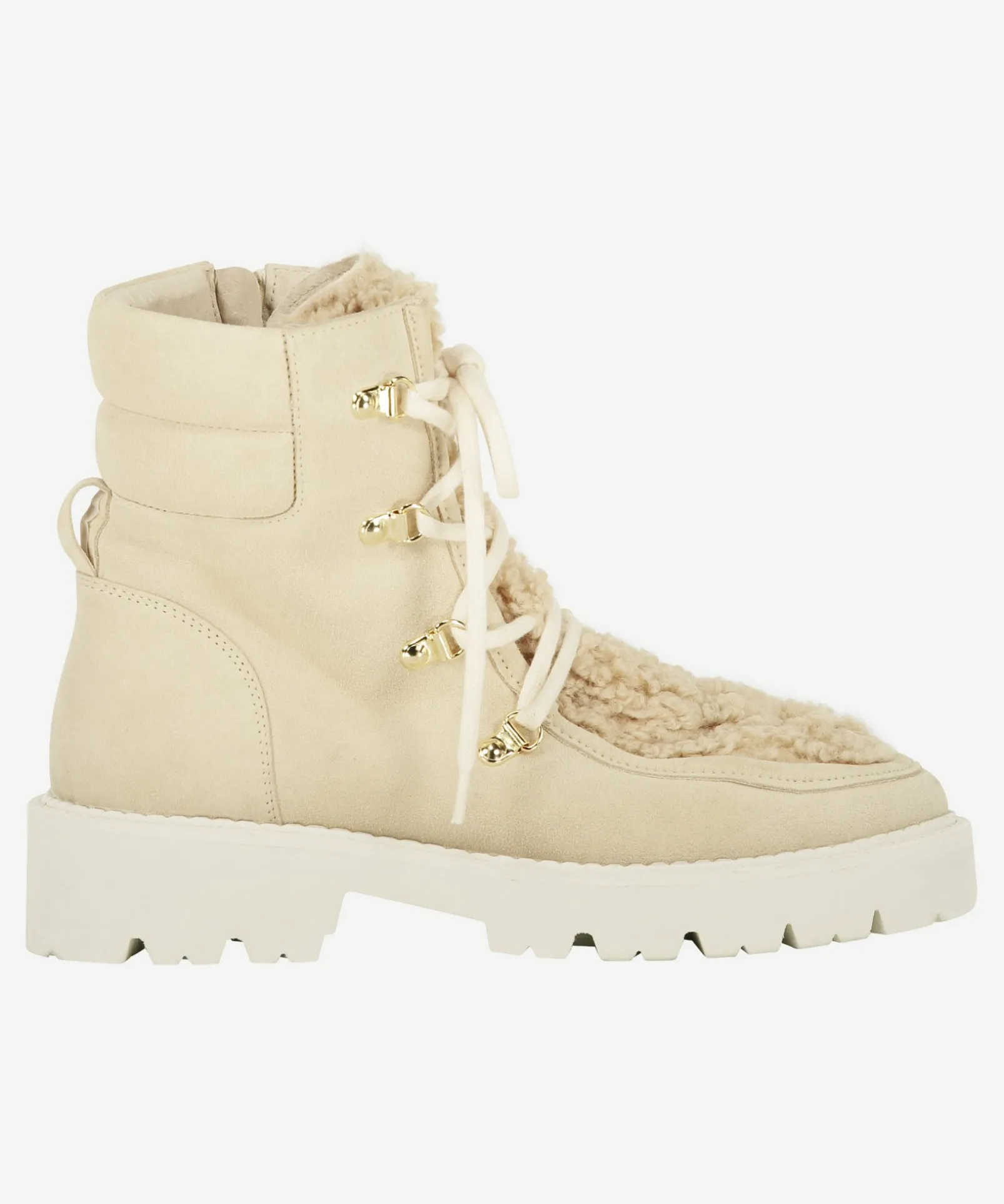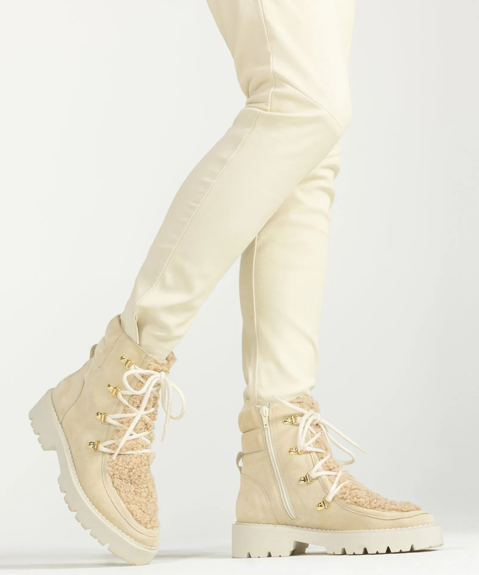 Maak Kennis Met Onze Stijlvolle Austin Boots In De Elegante Creamy White Kleur. Deze Boots Zijn Niet Alleen Trendy, Maar Ook Comfortabel Dankzij De Zachte Voering Aan De Binnenkant. Het Faux Fur Detail Op De Tong Van De Schoen Voegt Luxe En Textuur Toe. Met De Geveterde Sluiting Kun Je De Pasvorm Aanpassen Voor Ultiem Comfort. Deze Prachtige Schoenen Voegen Verfijning En Comfort Toe Aan Elke Outfit, Waardoor Je Stijlvol En Warm Blijft, Ongeacht De Gelegenheid. Met De Veelzijdigheid En Modieuze Uitstraling Zijn De Austin Boots Een Onmisbare Aanvulling Op Je Schoenencollectie. Combineer De Austin Boots Met Een Faux Fur Jas Voor Een Heerlijk Fluffy Uitstraling.