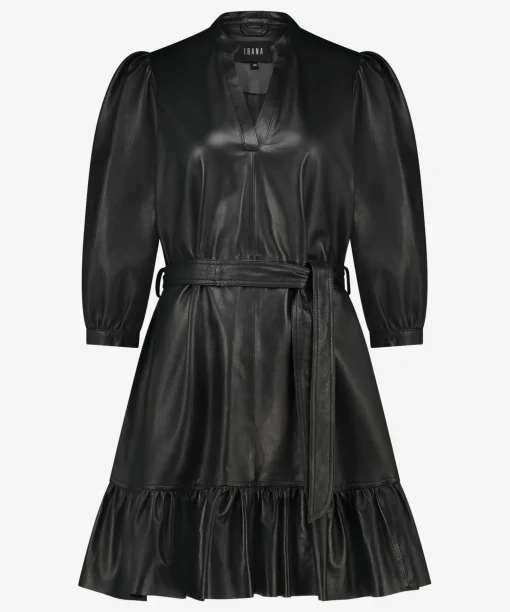 Ben Je Op Zoek Naar The Perfect Little Black Dress? Ga Dan Voor Een Stijlvolle Look Met De Leren Daniella Jurk In De Kleur Black. Deze Prachtige Jurk Is Een Perfecte Combinatie Van Elegantie En Eigentijds Design. De Daniella Bevat Een V-Hals En Met Het Bijpassende Ceintuur Kun Je De Taille Accentueren, Waardoor Je Figuur Mooi Uitkomt. De Pofmouwen Geven De Jurk Een Vrouwelijke Uitstraling, Terwijl De Onderkant Is Afgewerkt Met Subtiele Ruffles Voor Een Speels En Romantisch Detail. Gemaakt Van Hoogwaardig Leer, Straalt De Jurk Luxe En Verfijning Uit. Of Je Nu Een Speciale Gelegenheid Hebt Of Gewoon Een Dagelijkse Dosis Elegantie Wilt, De Daniella Jurk Is De Perfecte Keuze.