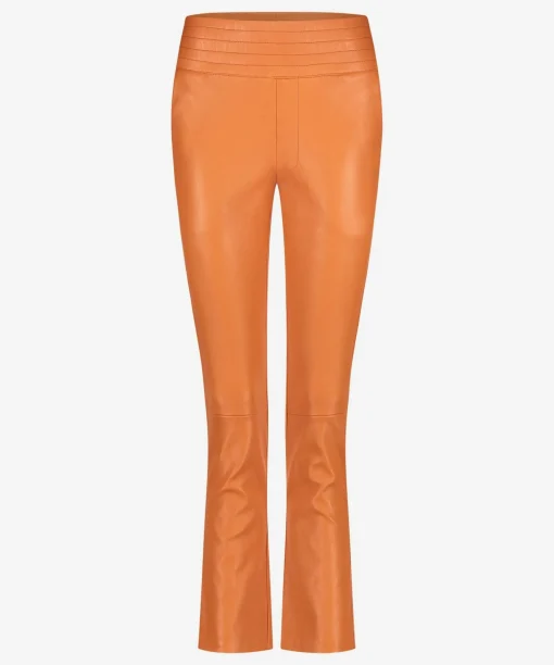 De Phien In De Kleur Goldfish Is Een Stijlvolle Broek Van Hoogwaardig Leer. De Phien Is Een Hele Toegankelijke Broek Door De Brede Elastische Stretchband, De Steekzakken En Rechte Pijpen. Het Model Van De Broek Is Wat Hoger En Door Het Stretchmateriaal Aan De Binnenzijde Zit De Broek Zeer Comfortabel. De Lichte Antique White Kleur Is Makkelijk Te Combineren Met Andere Kleuren En Zorgt Voor Een Prachtig Basis Item.