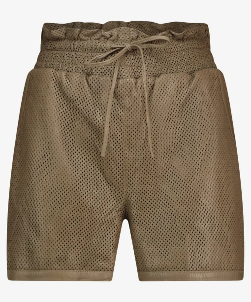 Deze Shorts Kun Je Het Hele Jaar Door Dragen. In De Zomer Met Blote Benen En In De Winter Met Panty’S Eronder. Het Leer Is Op Een Bepaalde Manier Bewerkt Waardoor Er Kleine Gaatjes In Zijn Geperforeerd. Dit Geeft Een Speels Effect Aan Het Materiaal En Zorgt In De Zomer Voor Een Bepaalde Luchtigheid. Stylingtip: Combineer De Shorts Met Jouw Favoriete Schoenen Zoals Laarsjes, Slippers Of Sandalen. In De Taille Kun Je Dit Broekje Aansnoeren Met Een Koordje Voor Een Perfecte Fit. De Shorts Safira Is Ook Beschikbaar In De Zachte Kleur Buttery Yellow.