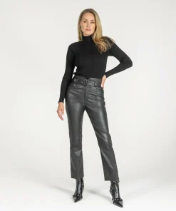 De Shelley Is Een High Waisted Leren Rok Die Wordt Gesloten Met Drukknopen Aan De Voorkant. De Rok Heeft Een Normale Fit.